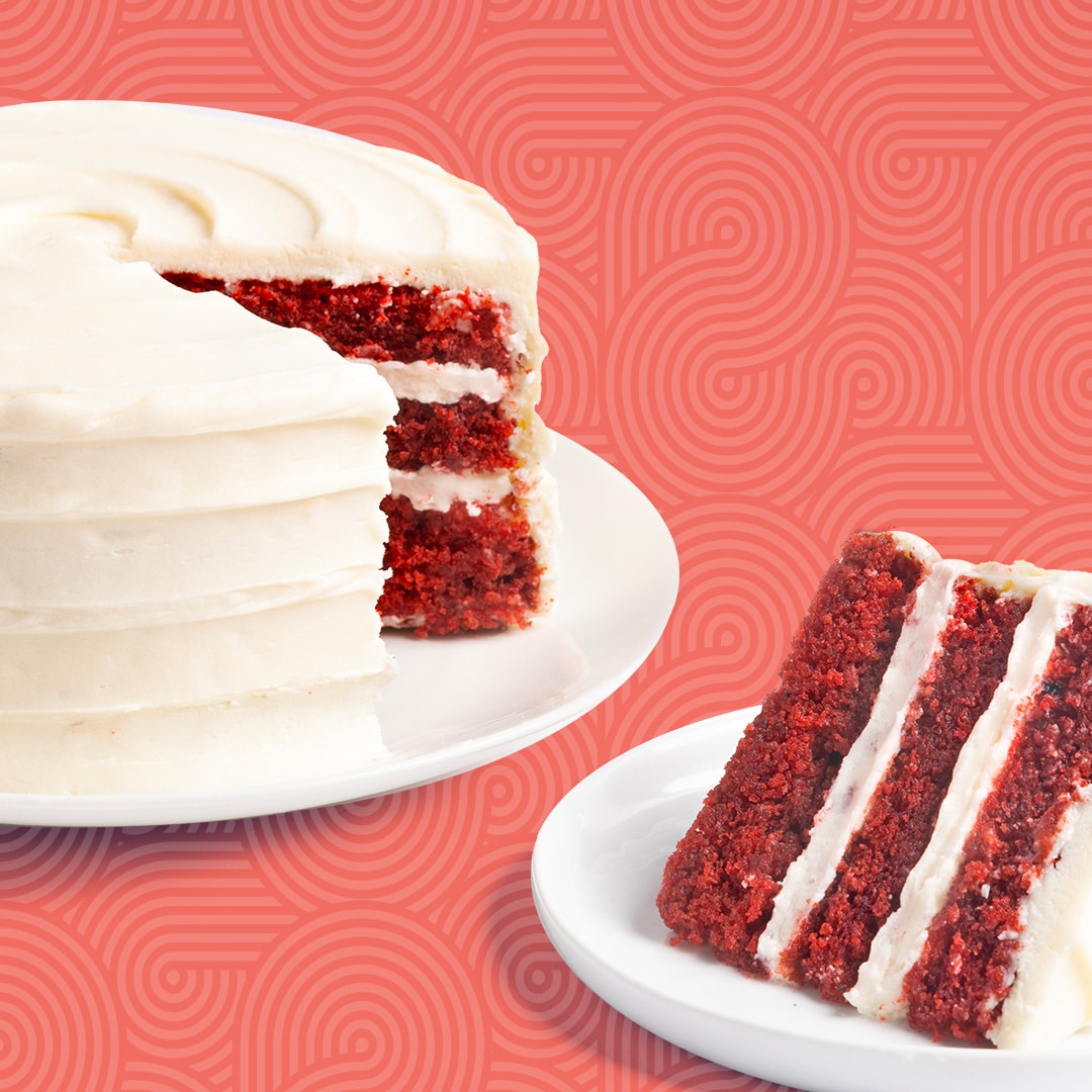 Our gluten-free take on a classic cake. Each slice is a masterpiece of a deep crimson hue with rich cocoa flavors topped with smooth cream cheese frosting Slice