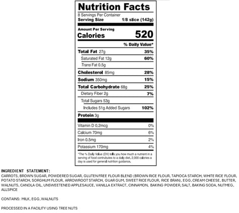 Savor the taste of one of our most popular items our Gluten-Free Carrot Cake. Moist, spiced, and loaded with real carrots, each bite offers a delightful combination of warm spices and topped with toasted walnuts. Perfect for any occasion, this cake is sure to be a crowd-pleaser, providing a delicious option for those with gluten sensitivities.